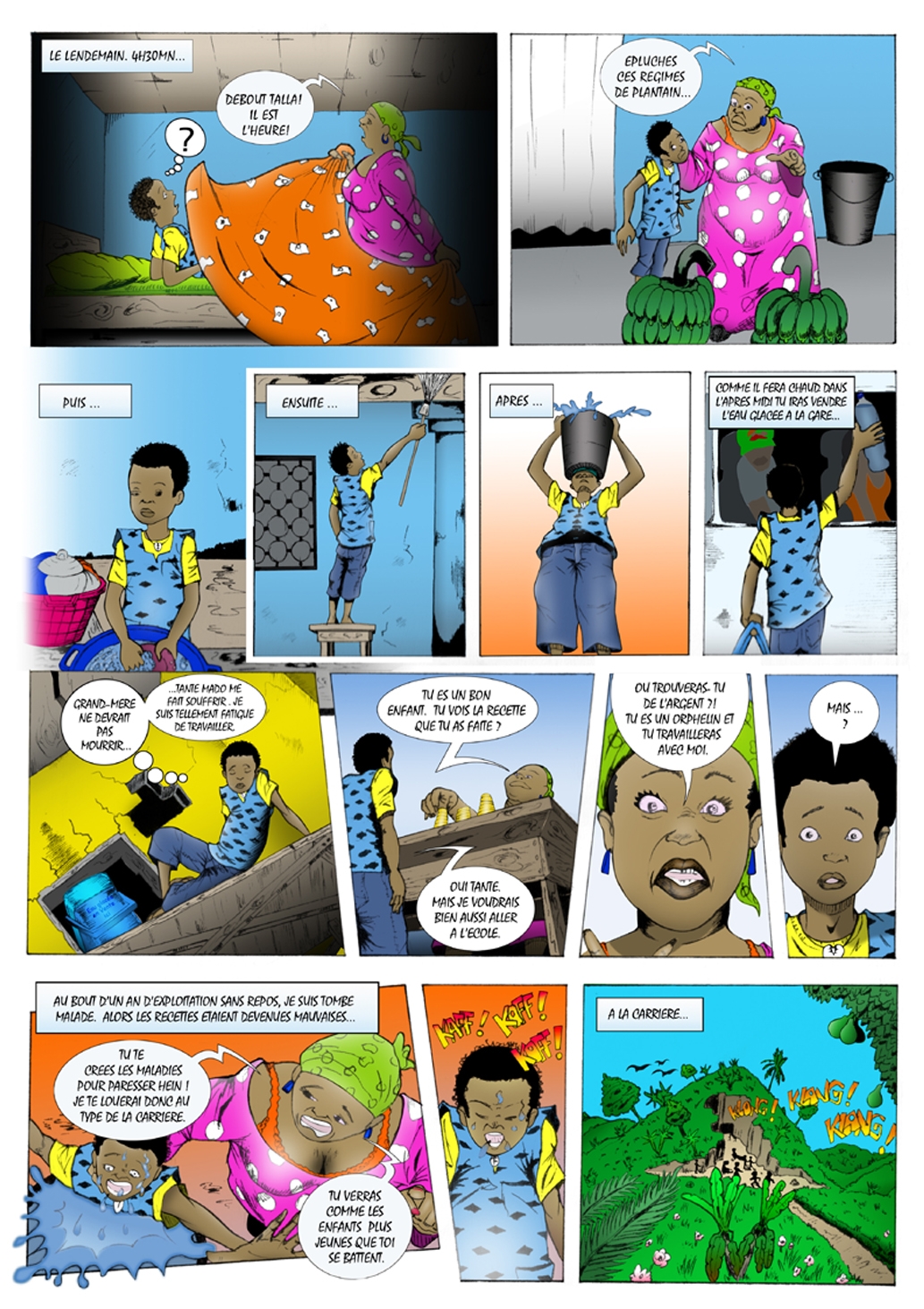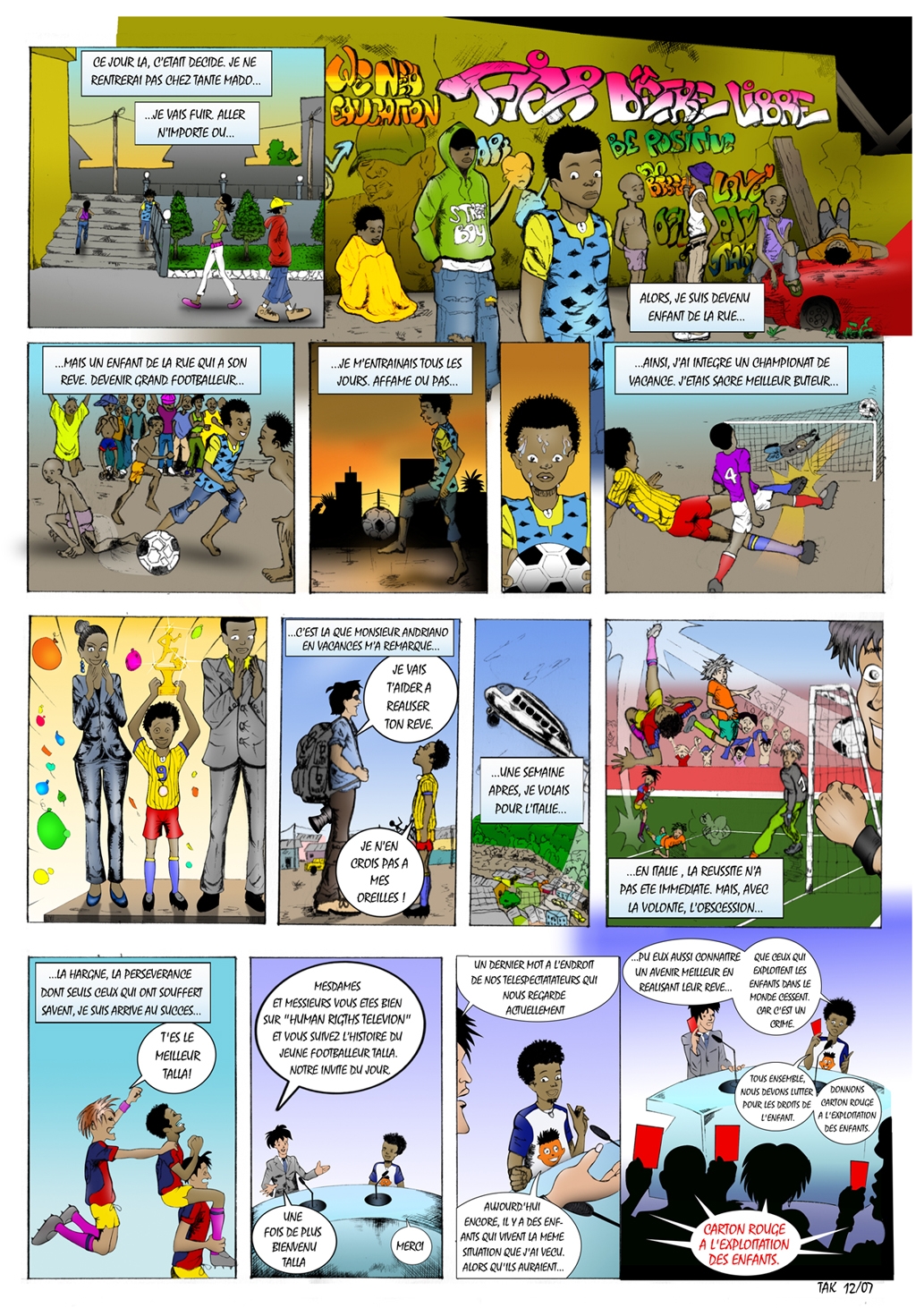 Un jeune de 25 ans a décidé de contribuer à la prévention des abus envers les enfants en faisant une bande dessinée sur le travail des enfants. Takukam Eric propose mettre cette bande dessinée à la disposition de la Coalition (qui pourrait le contacter pour les modalités pratiques) pour une prévention à grande échelle (confère la copie jointe).